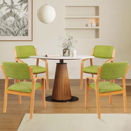 CLATINA Wooden Dining Chairs Set of 4, Modern Fabric Upholstered Kitchen Side Chair, Ergonomic Padded Cushion Backrest Wood Accent Chairs, Farmhouse Dinner Chair for Kitchen Dining Room, Green