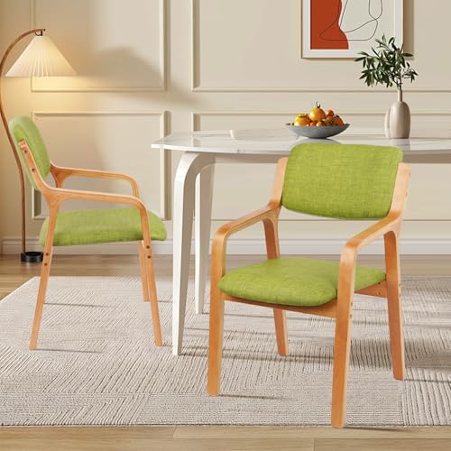 CLATINA Wooden Dining Chairs Set of 2, Modern Fabric Upholstered Kitchen Side Chair, Ergonomic Padded Cushion Backrest Wood Accent Chair, Farmhouse Dinner Chair for Kitchen Dining Room, Green