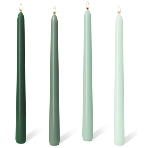 10'' Taper Candles, Set of 4 Gradient Green Candle Tapered Candles, Unscented Dripless Long Tall Dinner Candle Sticks for Table Dinner Wedding Christmas Halloween Home Decor