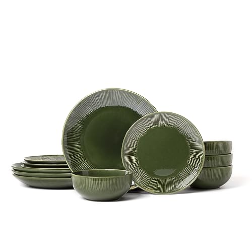 Mikasa Jardin 12-Piece Dinner Set, Stoneware Dinner Set for 4 with Dinner Plates, Side Plates and Bowls, Green - Gift Boxed & Dishwasher Safe