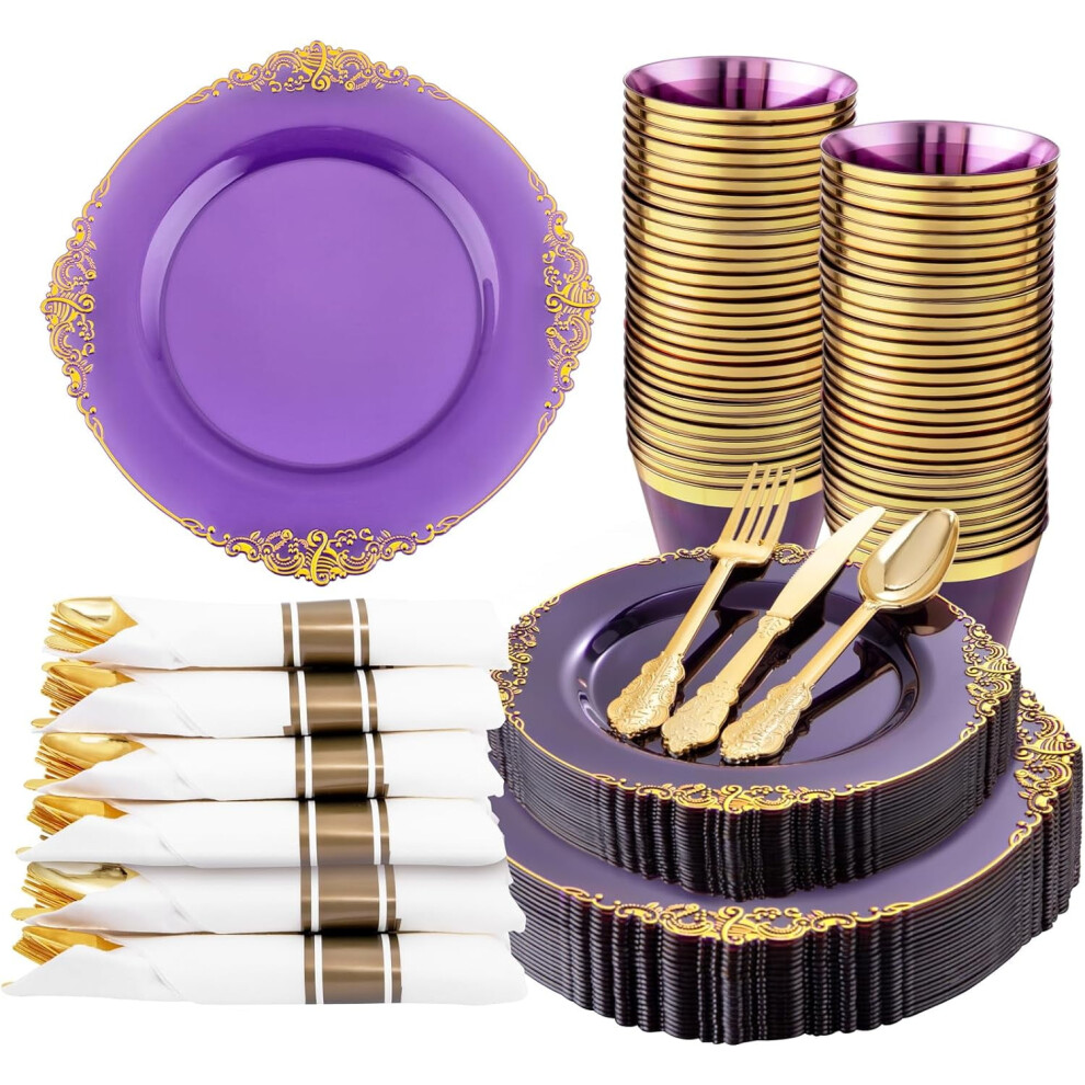 Nkaiso Disposable Paper Plates 50 Pack, White and Green Party Plates Dinner Set - 25x9inch & 25x7inch Plate Elegant Disposable Tableware for Birthday, Wedding, Christmas Party Supplies