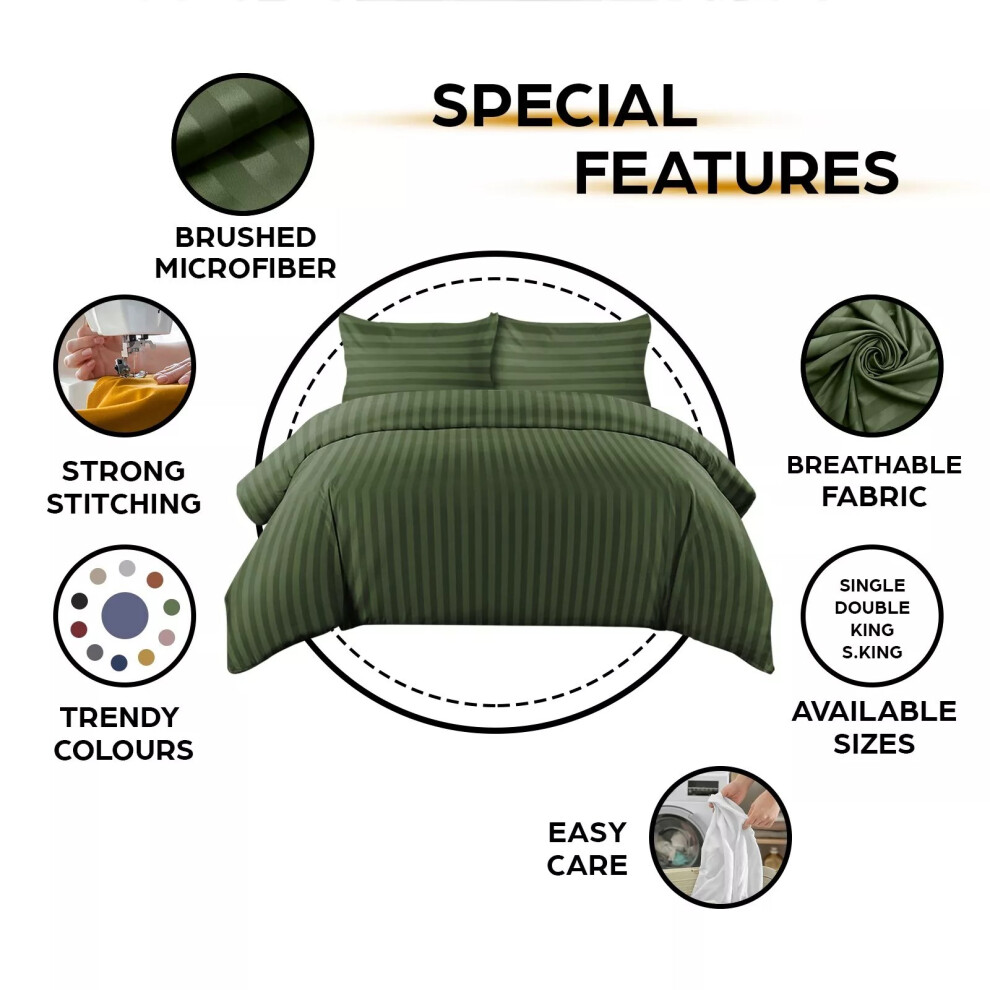 (Single, Olive Green) Stripe Duvet Covers Bedding Set Fitted Sheet & Pillowcase
