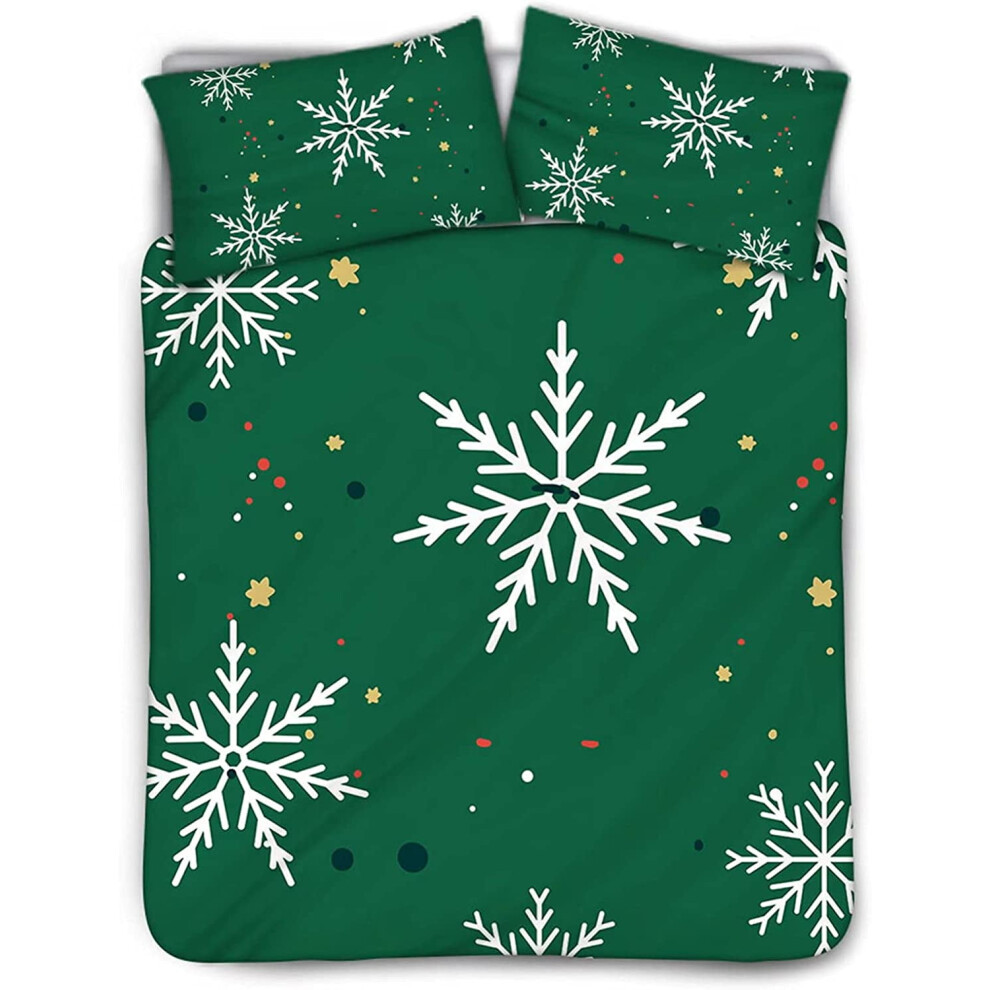 Bed Sets Duvet Cover Bedding Set 3 Pieces,Soft Green Snowflake Duvet Cover with Zipper Closure Adult Cover Bedclothes Covers