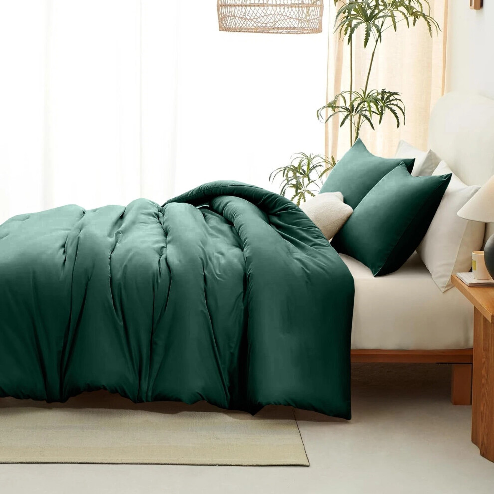 (GREEN DUVET COVER & PILLOW COVERS, SUPER KING) Hotel Quality Duvet Quilt with Hollowfibre Filling & Plain Duvet Cover Bedding Set