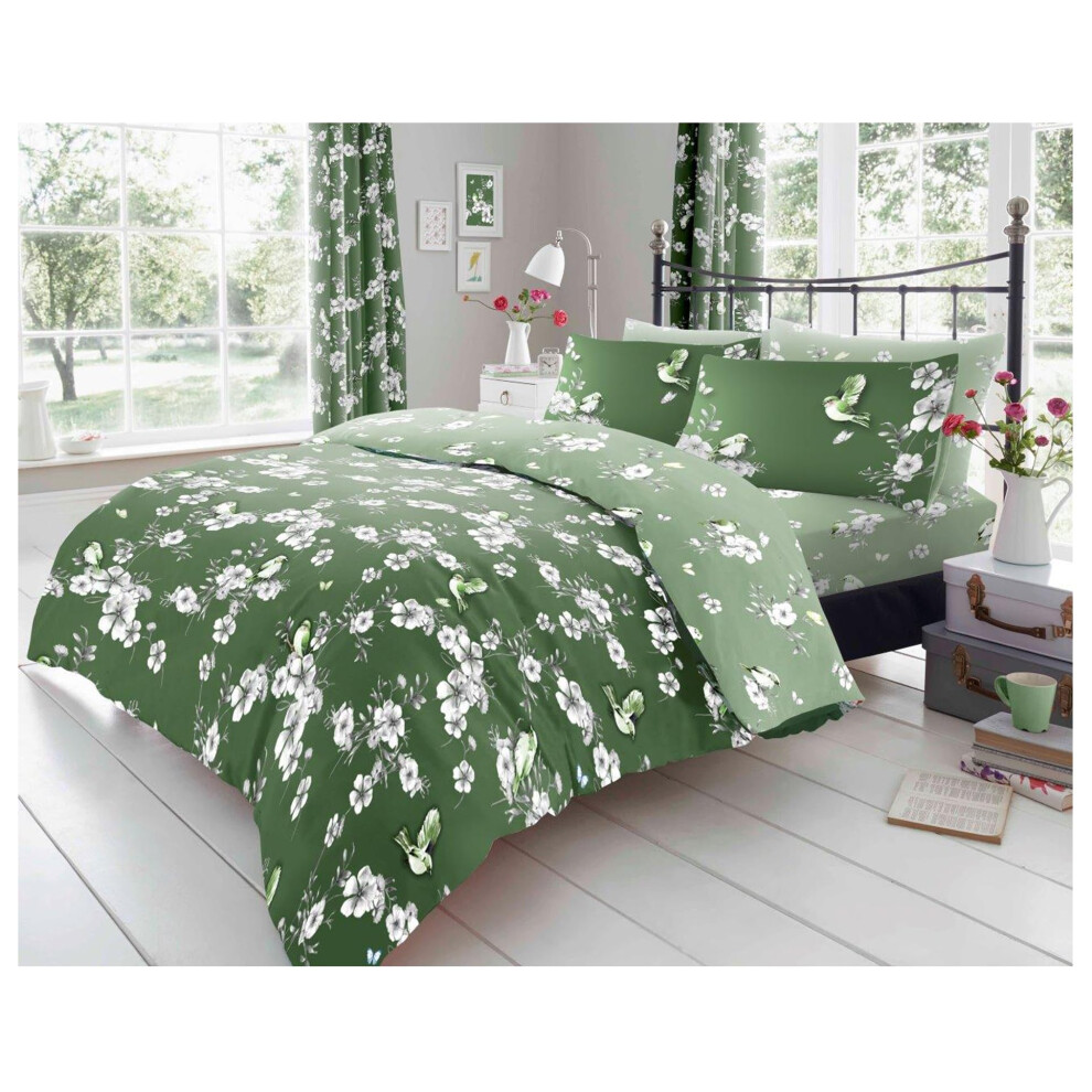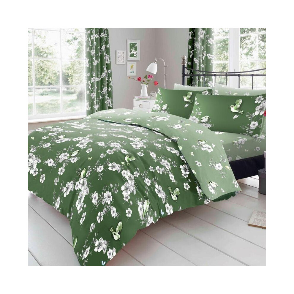 (Green, Super King) Birdie Blossom Duvet Cover Sets Quilt Covers 2 pieces or 3 pieces sets Soft Easy Care Bed Linen Bedding Set With Matching Pillowca