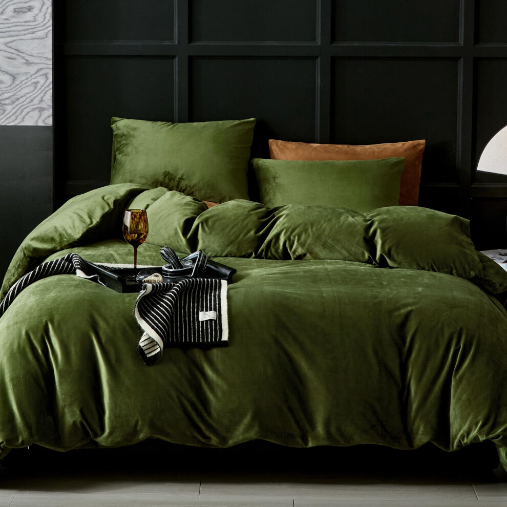 WARMDERN Olive Green Velvet Duvet Cover King Size Flannel Duvet Cover Bedding Sets 3pcs Ultra Soft Luxury Textured Modern Crystal Velvet Duvet Covers