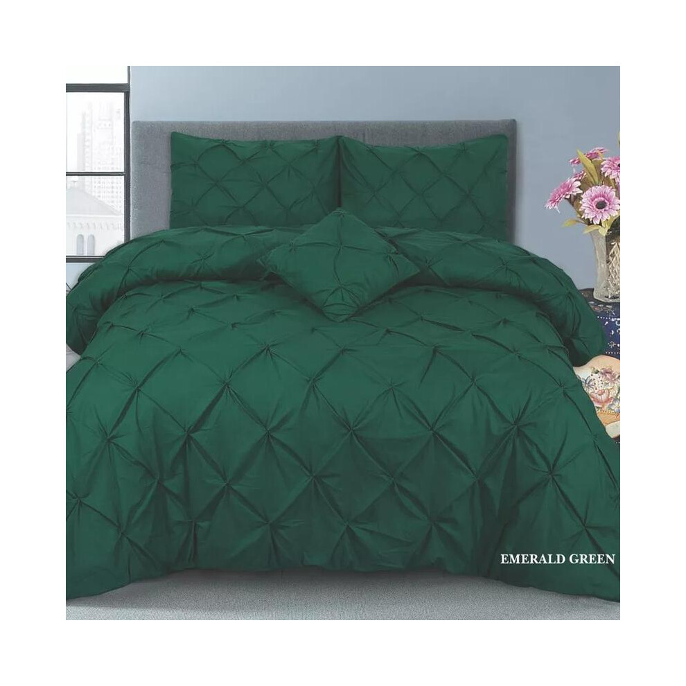 (Emerald Green, 2 X Filled Cushion with Covers) Pintuck Pleated Alford Egyptian Cotton Mix DUVET COVER SET BEDDING SETS Single DOUBLE KING SUPER KING