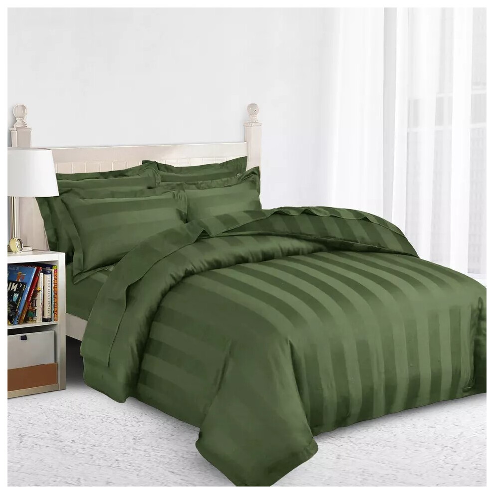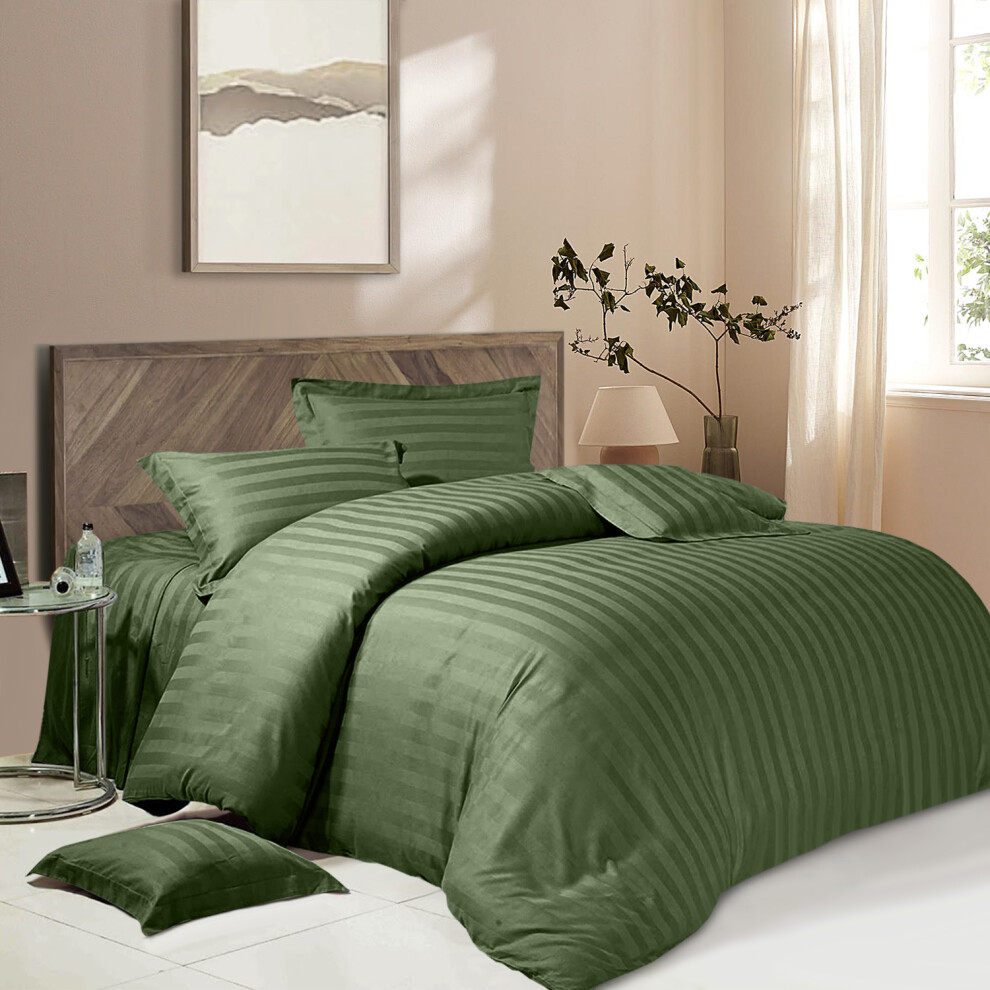 (Double, Olive Green) Stripe Duvet Covers Bedding Set Fitted Sheet & Pillowcase