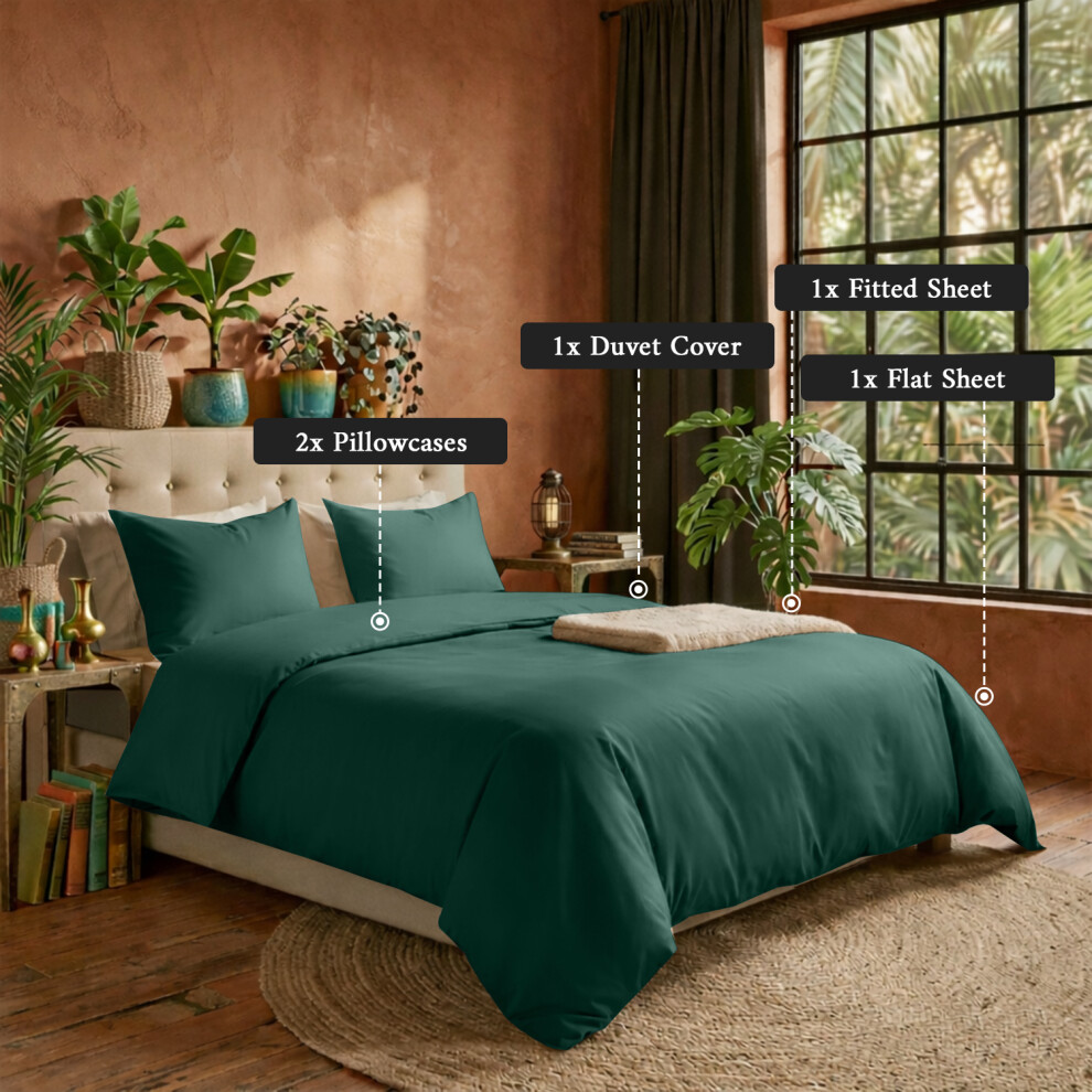 (Green Emerald, Super King) 4 Piece Duvet Covers Bedding Set Fitted Bed Sheets