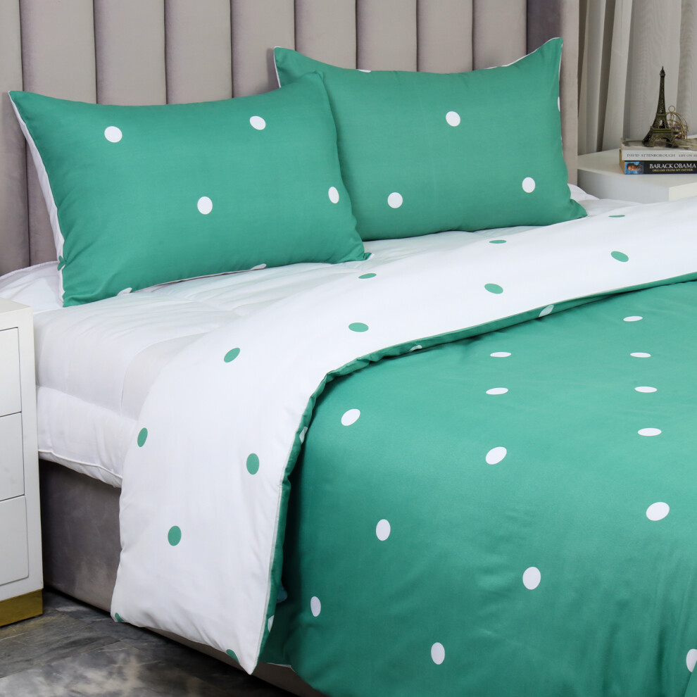 (White & Green Dotted, DOUBLE) Reversible Duvet Cover Bedding Set & Pillowcases Printed Floral Duvets Covers Single Double King