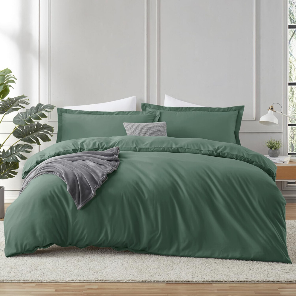 Hearth & Harbor Dark Green Duvet Cover King Size - 3 Piece King Duvet Cover Set Soft Double Brushed King Duvet Covers with Button Closure 1 King Siz