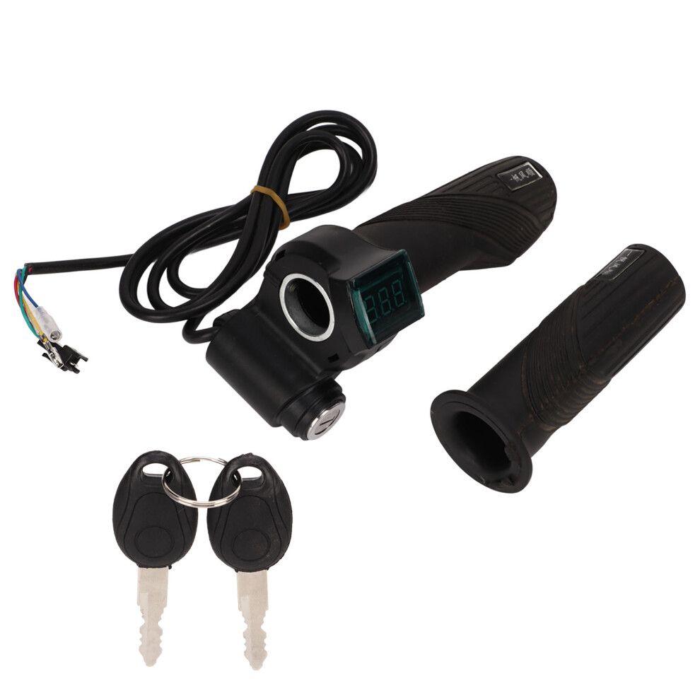 Electric Bike Throttle Grip, 1 Pair Universal Scooter Twist Handlebar With Green Display Voltage Indicator, Ergonomic Design For Comfortable Riding