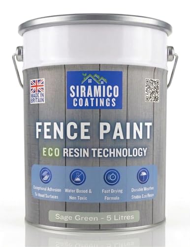 SIRAMICO COATINGS Fence Paint | 5 Litres | Waterbased ECO Resin Technology | 6 Luxury Colours | Smooth Matt Finish for outdoor wood protection | 10 Year Colour Guarantee (Sage Green)