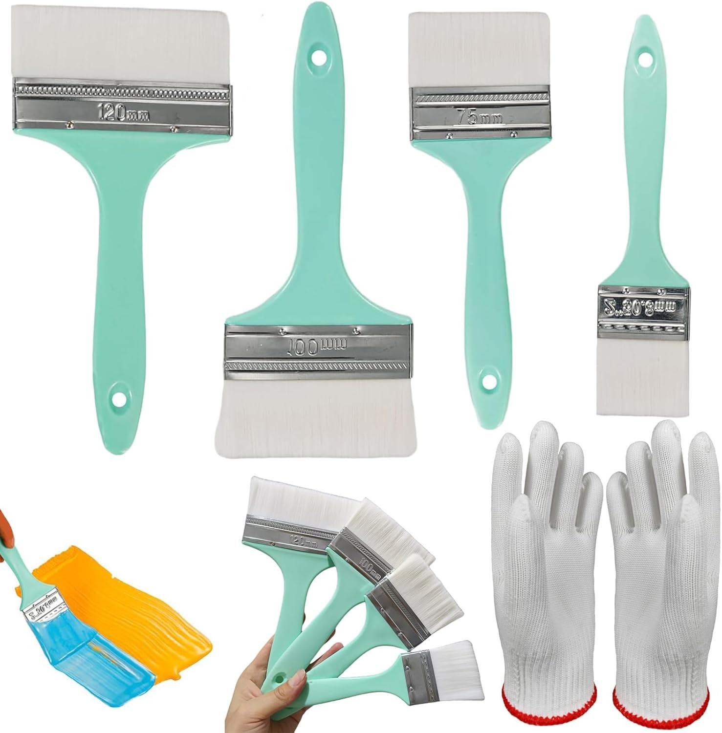 6 Pcs Set Fence Paint Brushes, With Gloves Paint Brush, Fence Brush Paint Decki