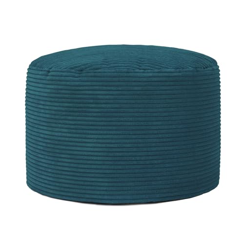 icon Milano Cord Bean Bag Pouffe, Teal Green, Large Pouffe Footstool with Filling Included, Footrest, Bedroom, Living Room, Living Room Furniture