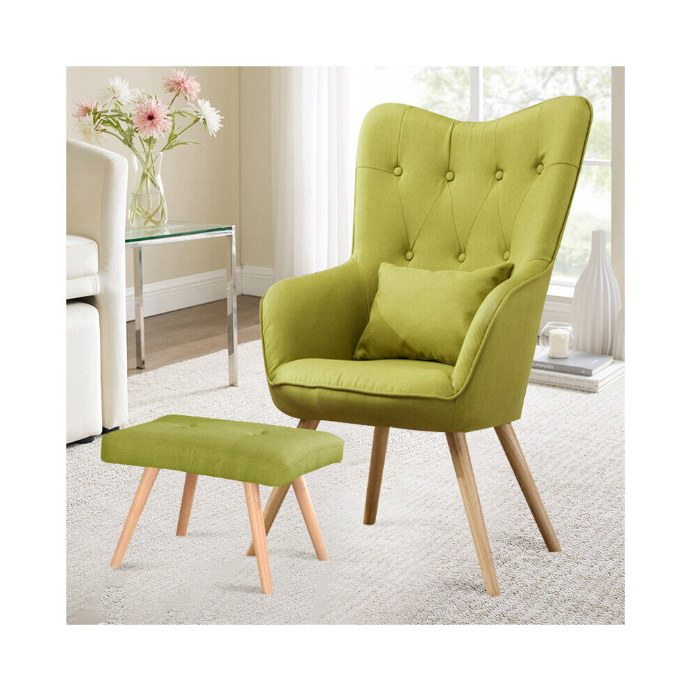 Linen Curved Buttoned Back Single Sofa Armchair with Footstool, Green