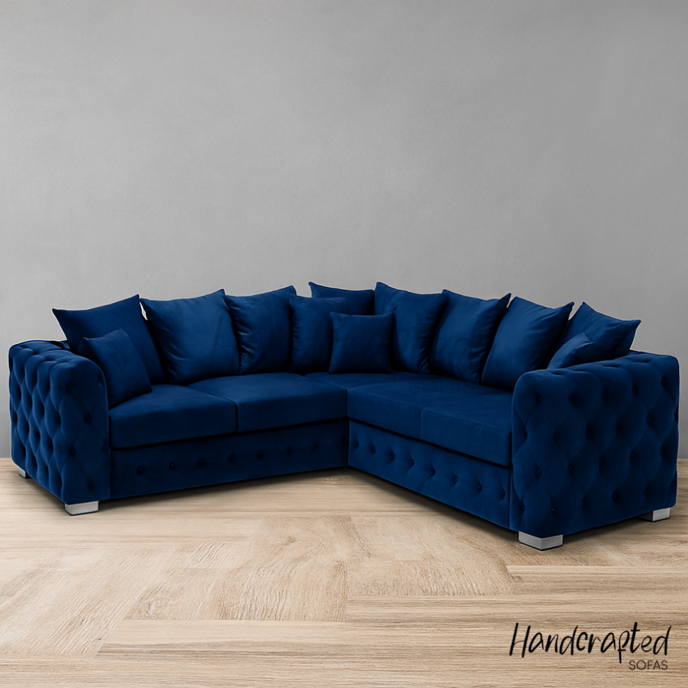 (Green, Footstool (Squair)) Ashton 5 Seater Corner Sofa Plush Velvet | Chesterfield Style Scatter Back Sofa