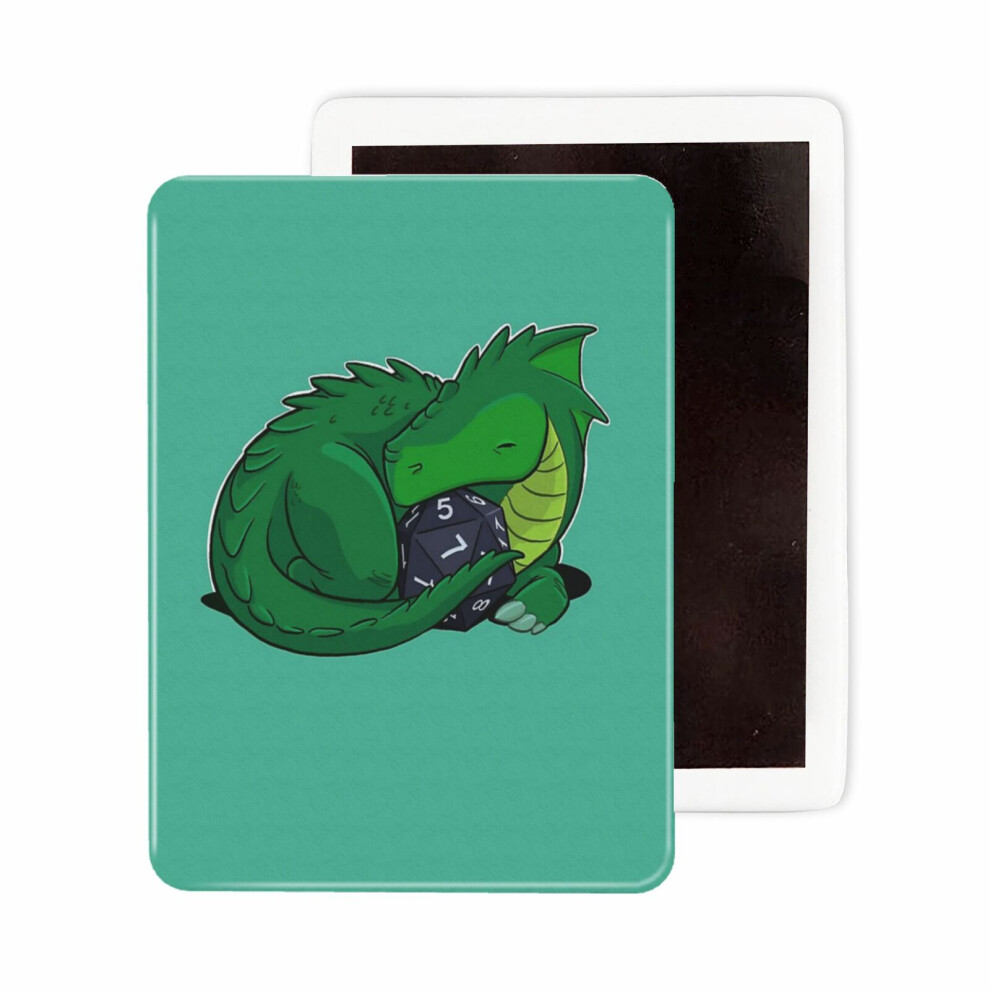 (D20 Green Dragon_1093) Fridge Magnets Ceramic Refrigerator Magnet Handmade Graphic Artwork Kitchen Decorative Accessories / 2.4 x 3.2inch