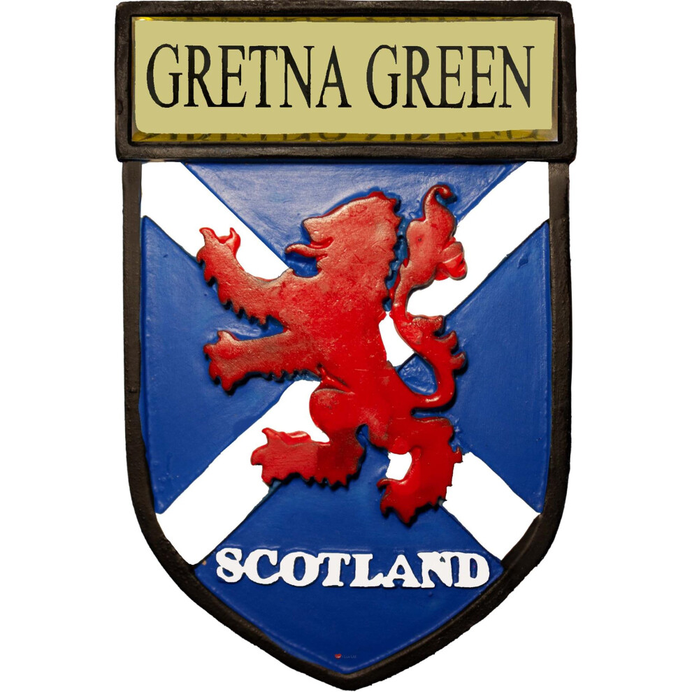 (Gretna Green) Resin Fridge Magnets Saltire with Rampant Lion on Scottish Place Names
