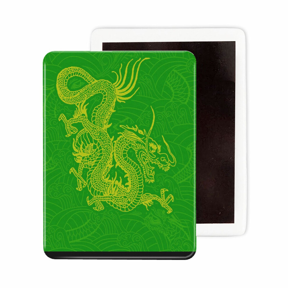 (Chinese Yellow Dragon Pattern Green Background_4760) Fridge Magnets Ceramic Refrigerator Magnet Handmade Graphic Artwork Kitchen Decorative Accessori