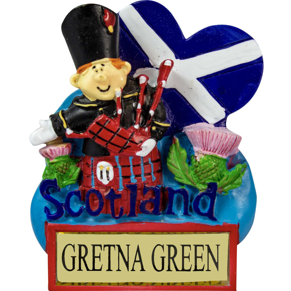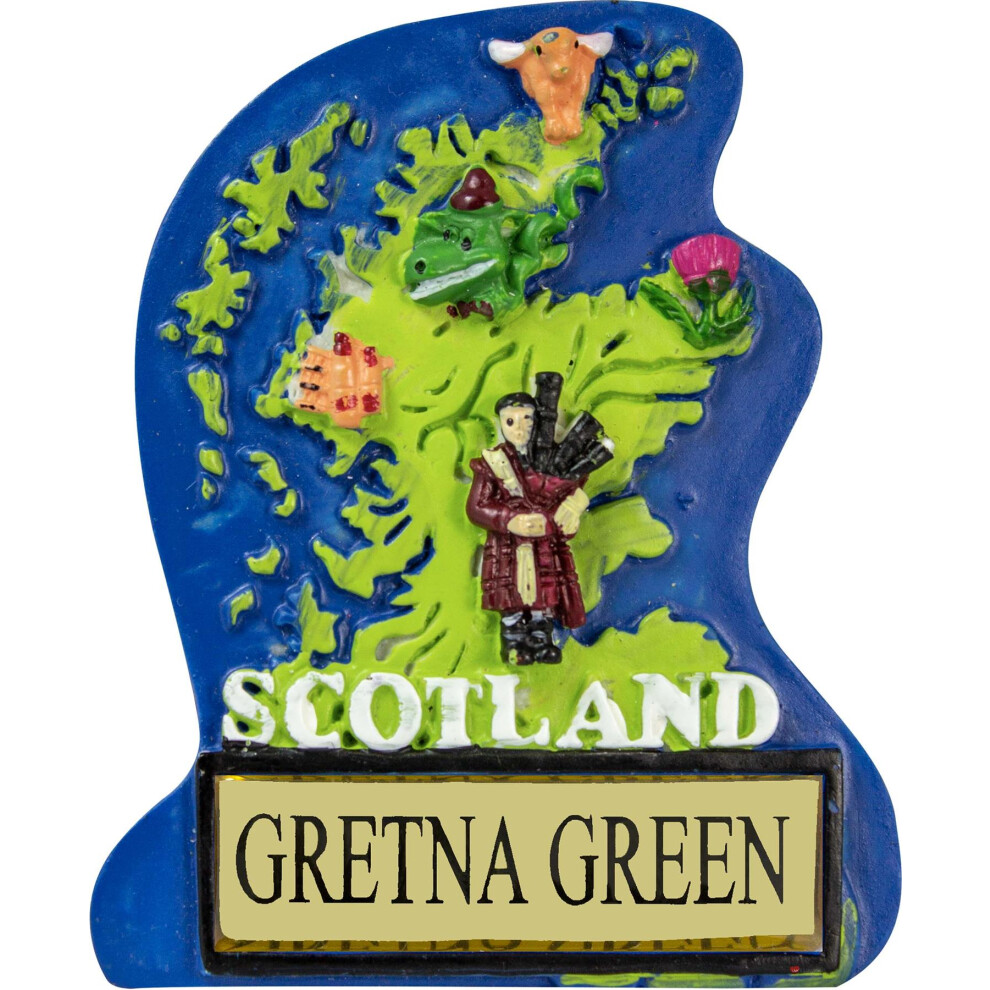 (Gretna Green) Resin Fridge Magnet Map of Scotland Shape with Piper Scottish Place Name