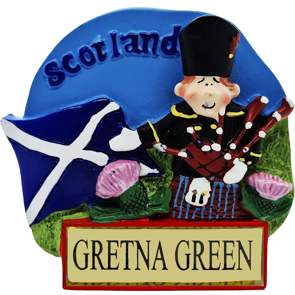 (Gretna Green) Resin Scottish Fridge Magnet Piper with Saltire Flag Scottish Place Name