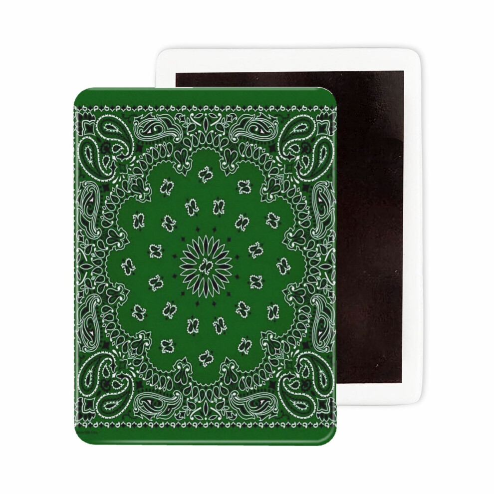 (Green Bandana_1067) Fridge Magnets Ceramic Refrigerator Magnet Handmade Graphic Artwork Kitchen Decorative Accessories / 2.4 x 3.2inch