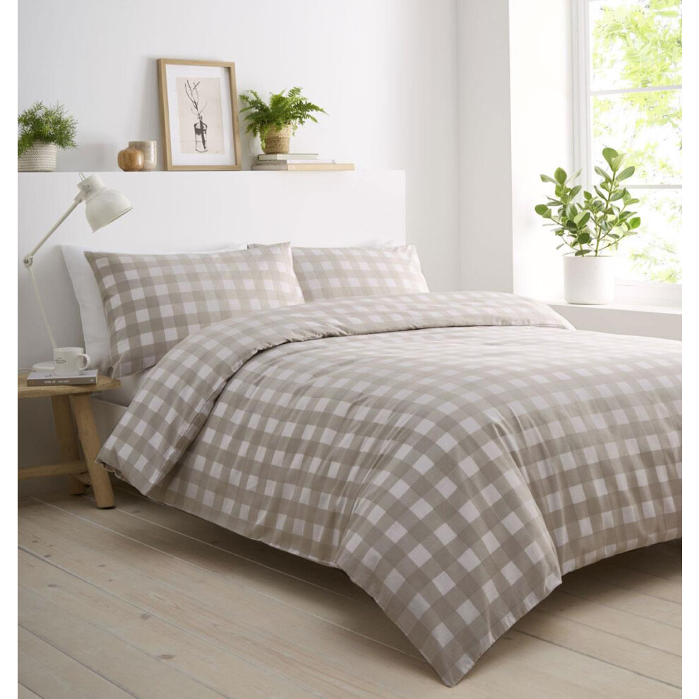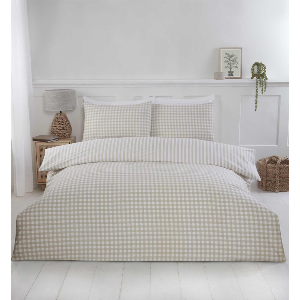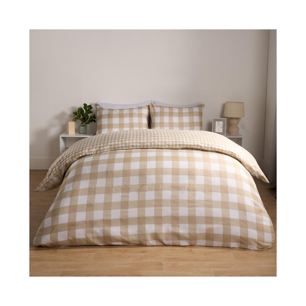 (Natural, Double) OHS Gingham Duvet Cover Reversible Bedding Set