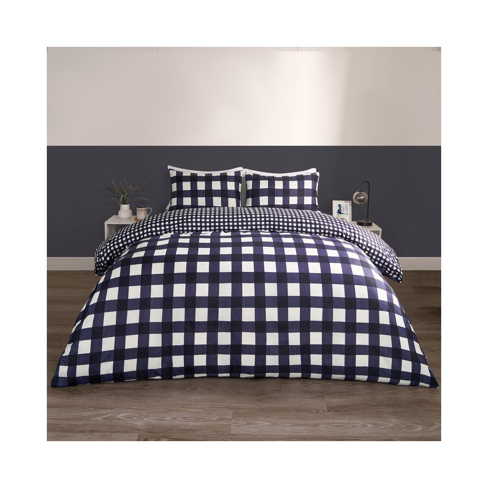 (Navy Blue, Double) OHS Gingham Duvet Cover Reversible Bedding Set