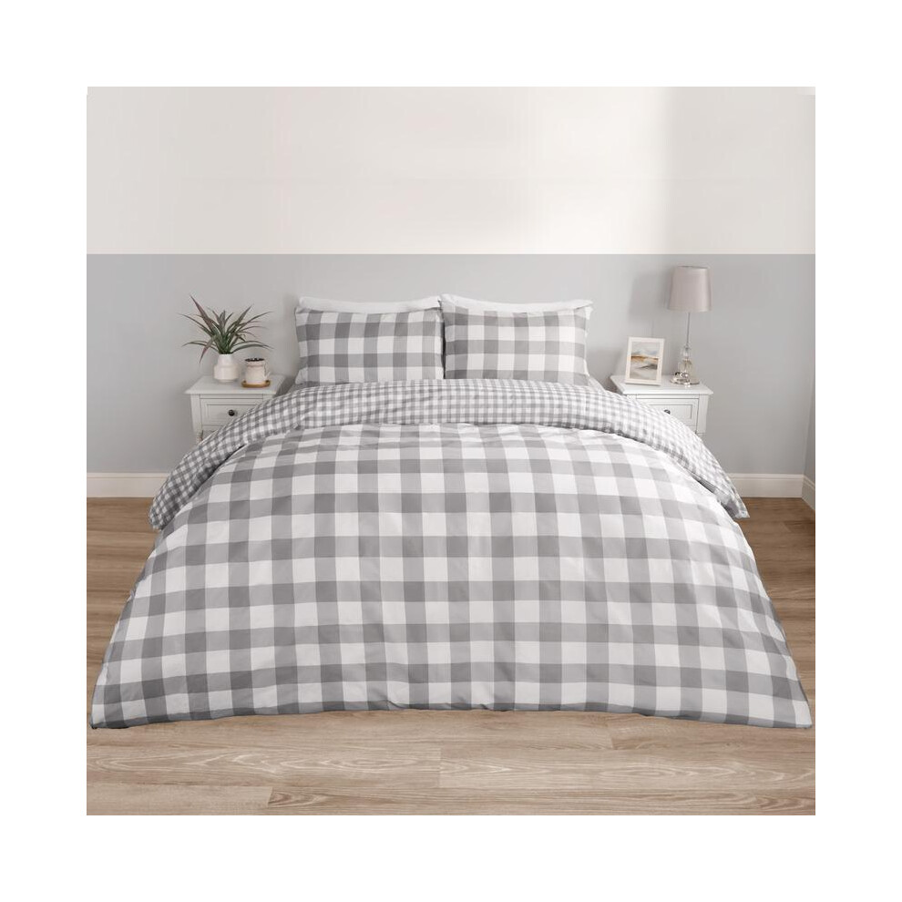 (Grey, Double) OHS Gingham Duvet Cover Reversible Bedding Set