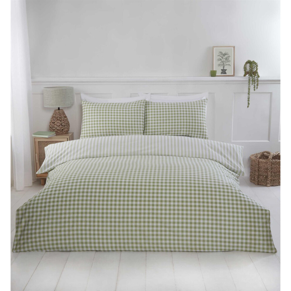 (Sage, Double) OHS Gingham Duvet Cover Reversible Bedding Set