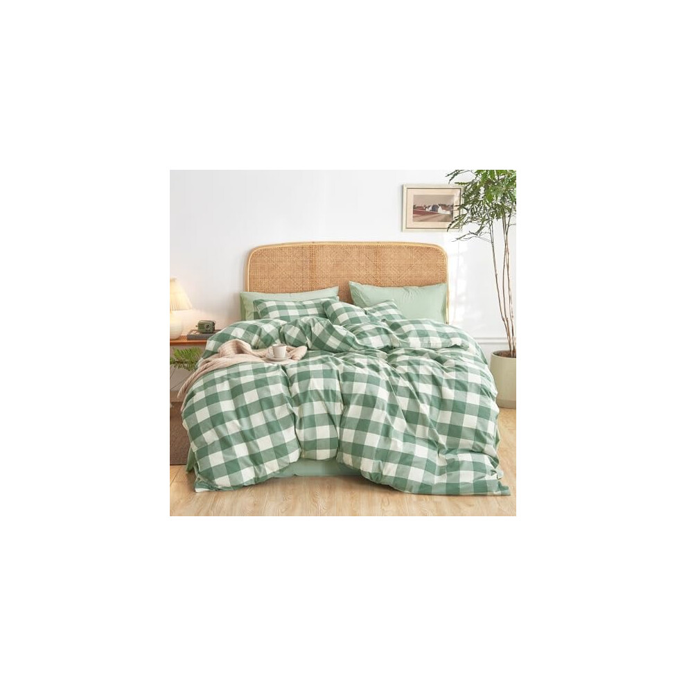 4 Pieces Duvet Cover Gingham Soft Bedding Set Boho Style Green All-Season Includes 2 Envelope Pillowcases