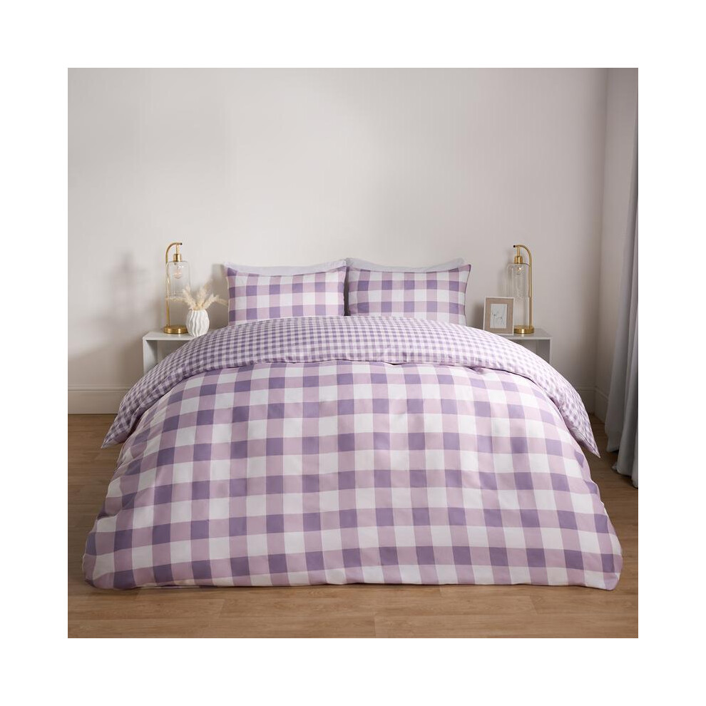 (Lilac, Double) OHS Gingham Duvet Cover Reversible Bedding Set
