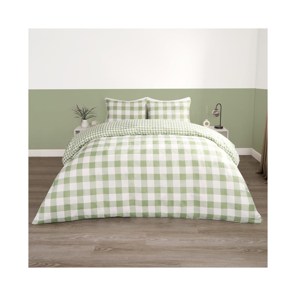 Rapport home King Duvet Cover Set - Green Checkered Polycotton Bedding with 2 Pillowcases - Soft & Durable Gingham Design for Bedroom (220 x 230cm)
