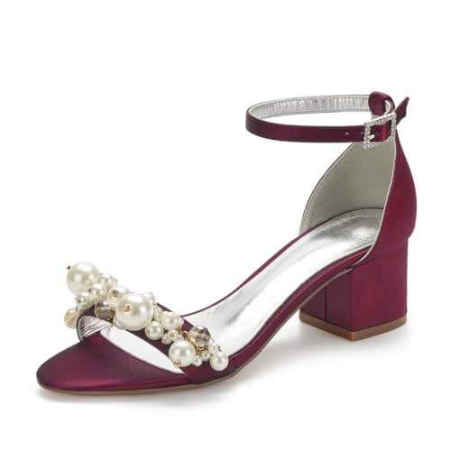 ZhiQin Burgundy,9 UK, Green Heels for Women Sexy Pointed Toe Ankle Strap Sandals Buckle Party Dress with Pearl