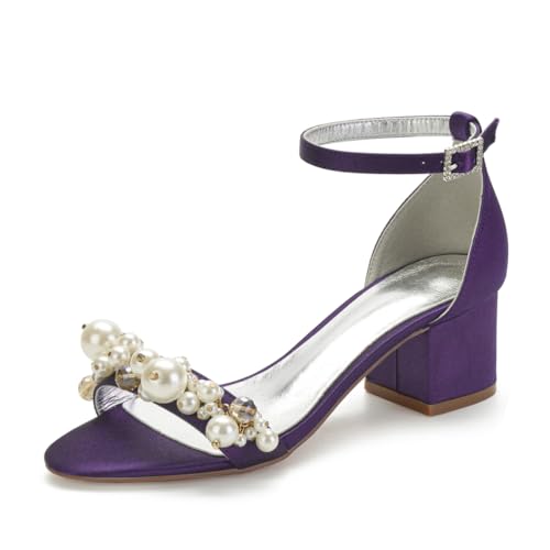 ZhiQin Duck Purple,9 UK, Green Heels for Women Sexy Pointed Toe Ankle Strap Sandals Buckle Party Dress with Pearl