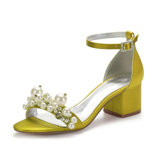 ZhiQin Yellow,7 UK, Green Heels for Women Sexy Pointed Toe Ankle Strap Sandals Buckle Party Dress with Pearl