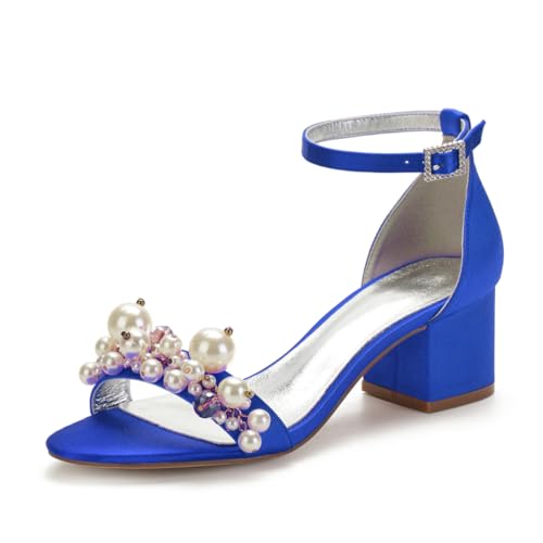 ZhiQin Dark Blue,7 UK, Green Heels for Women Sexy Pointed Toe Ankle Strap Sandals Buckle Party Dress with Pearl