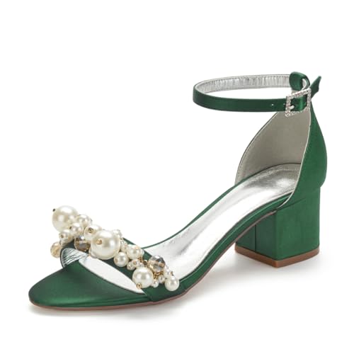 ZhiQin Dark Green,10 UK, Green Heels for Women Sexy Pointed Toe Ankle Strap Sandals Buckle Party Dress with Pearl