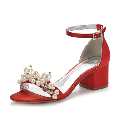 ZhiQin Red,5 UK, Green Heels for Women Sexy Pointed Toe Ankle Strap Sandals Buckle Party Dress with Pearl