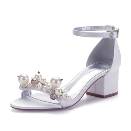 ZhiQin White,4 UK, Green Heels for Women Sexy Pointed Toe Ankle Strap Sandals Buckle Party Dress with Pearl