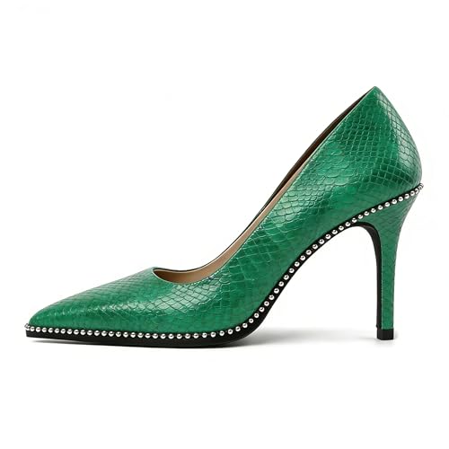 Mettesally Womens Green High Heels for Women Pointed Toe Stiletto Heels 8.5cm (3.3 inches) Snakeprint Ladies Evening Shoes for Office, Work, Party Court Shoes Wide Fit UK Size 11