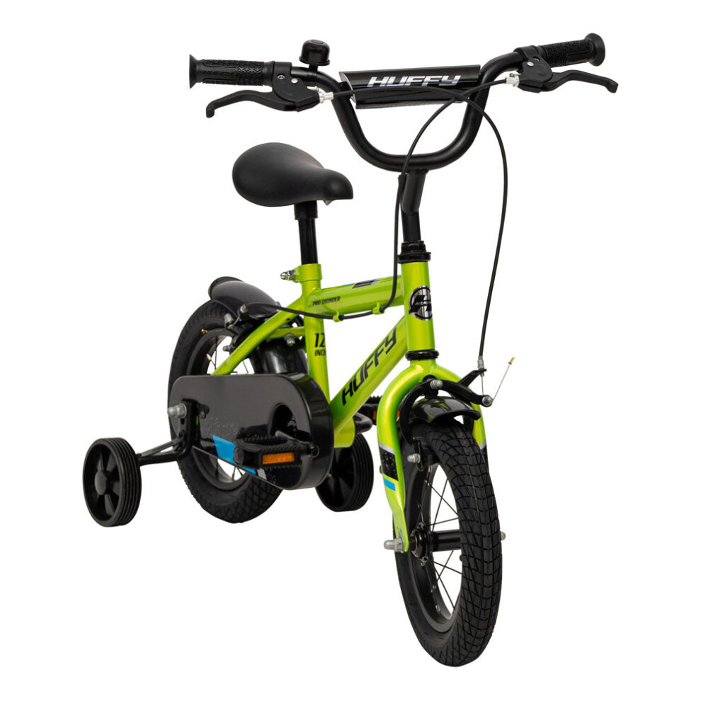 Huffy Pro Thunder 12 Inch Boys Bike with Stabilisers, Blue and Green – Ideal for Kids Aged 3 to 6 Years, Rider Height 98–112cm