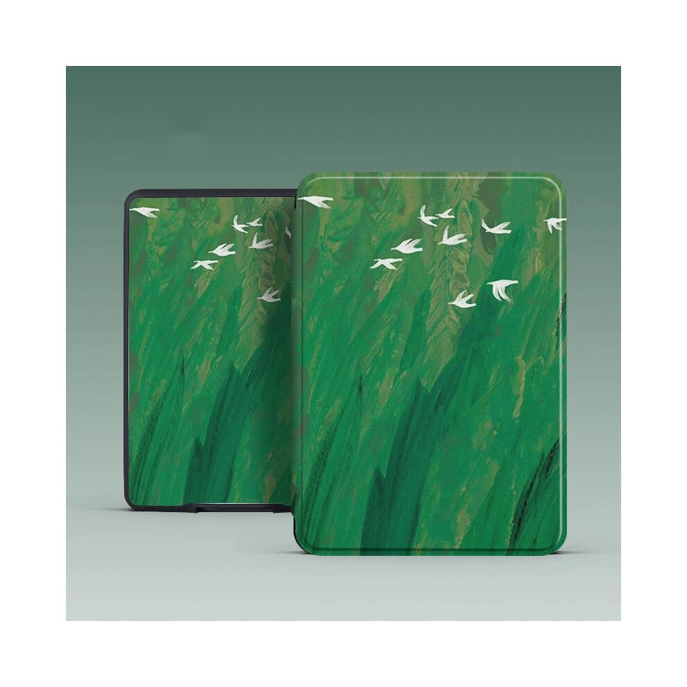 MoKo Case for 7" Kindle Paperwhite 12th Gen 2024&Kindle Colorsoft Signature Edition 2024,Lightweight PU Protective Shell Cover with Auto Wake/Sleep for Kindle Paperwhite 2024, Green Field and Bird