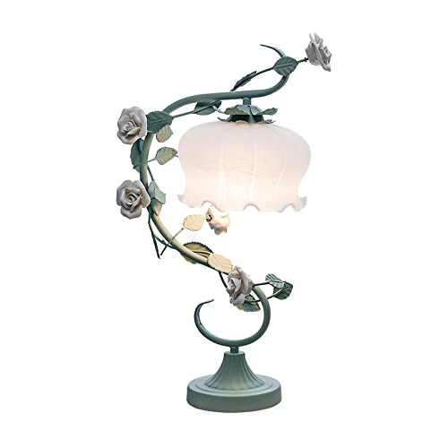 HHRLCH Floral Green Table Lamp Small Table Lamp with Glass Shades Lily of The Valley Ideal for Living Room Bedroom and Home Decor