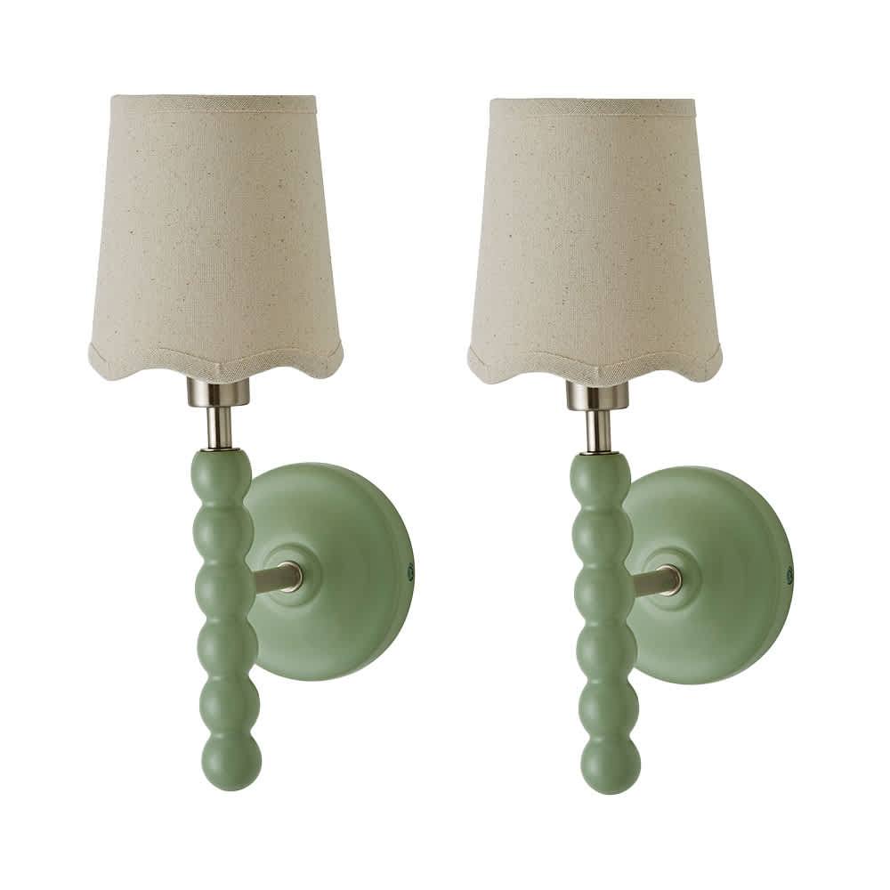 ValueLights Bobbins Pair of Pastel Wall Lights and Natural Linen Trim Lamp Shades in Pale Green