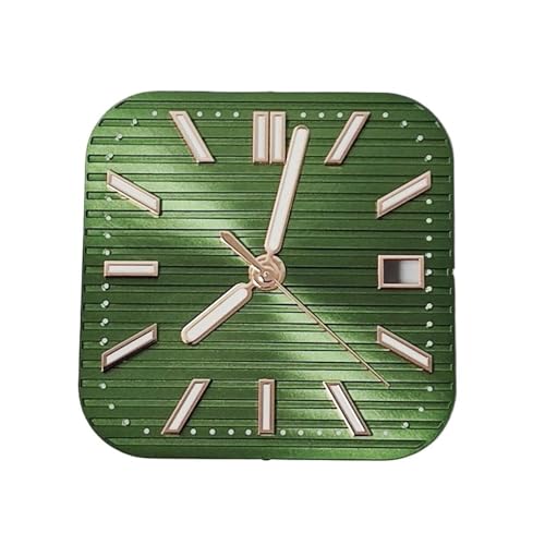 AOIMBNQC 1set 29.5MM Watch Dial Green Luminous Rose Nails Square Faces + Hands for NH35 NH36 Movement Single Calendar Pointer(Green Dial Hands)