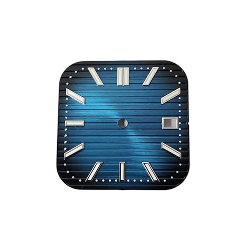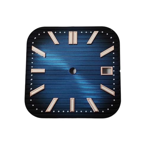 AOIMBNQC 1pc 29.5MM Watch Dial Green Luminous Rose Nails Square Faces for NH35 NH36 Movement Single Calendar(Blue Dial)