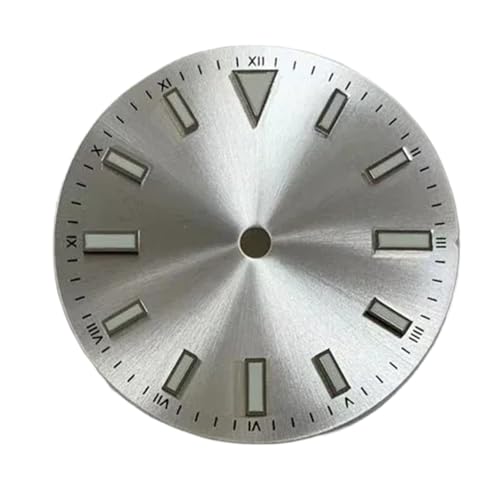 Nintens 1pc 28.5mm Watch Dial Stripe Nails Green Luminous Watch Accessories Suitable for NH35/8215/2836 Movement(Silver)