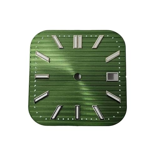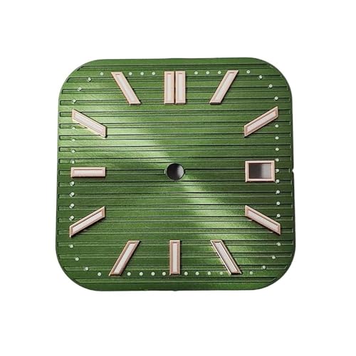 AOIMBNQC 1pc 29.5MM Watch Dial Green Luminous Rose Nails Square Faces for NH35 NH36 Movement Single Calendar(Green Dial)